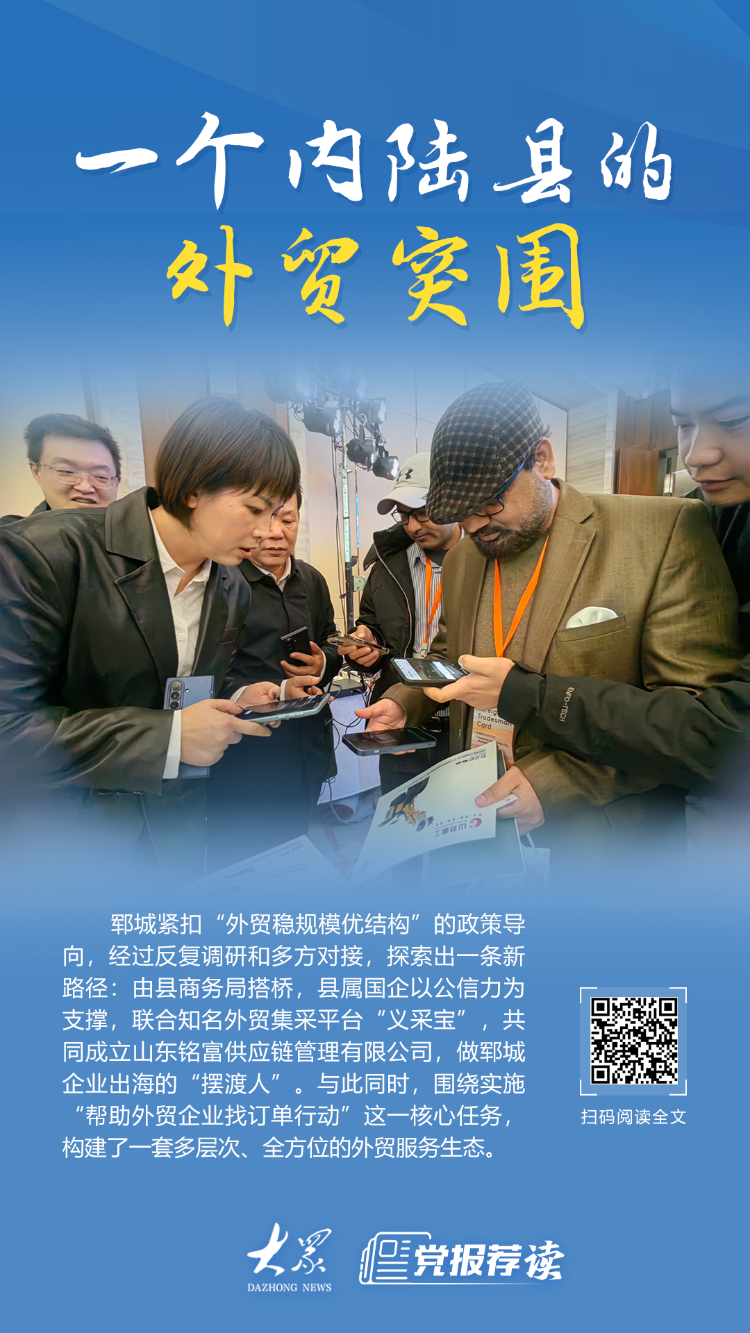 郓城县这个内陆县,依托平台公司,外贸突飞猛进,从“租船出海”到“帆船出海”。西南省份山东正值初冬,寒意已初现。然而,在郓城县举办的相亲会上,气氛却变得热烈起来。 11月13日,运城“一带一路”贸易协定与采购大会如期举行。来自沙特阿拉伯、埃及、孟加拉国等15个国家的数十名外商参观了酒类容器、特种车辆、纺织产品摊位,并会见了当地企业高管。 “没想到在这里能找到这么多优质供应商。”来自沙特阿拉伯的采购商阿马贾德·穆罕默德说,他仔细端详着手里的那些小瓶香水,不禁感叹道。 “十四五”以来,山东省重点稳外贸稳外资,加快制度性开放,主动融入国家开放整体格局,开放型经济不断迈上新台阶。虽然这场对决规模不大,但却体现了内陆县追求外贸突破的决心。民营经济大地州的“海外扩张困境” 运城市是典型的民营经济大地州。 12万多家民营企业正在为高质量发展奠定重要基础。这里的纺纱规模达到350万纱锭,玻璃瓶年产量14亿瓶,专用车年产量超过10万瓶,产品远销150多个国家和地区。依托雄厚的产业基础和过硬的产品质量,运城市进出口总额将超过2024年实现17.88亿元,比上年增长17.2%,增速居全市第一。然而,数据背后却隐藏着结构性的不安全感:“产品本身很难直接进入国际市场,利润较低。”山东郓城瑞盛玻璃有限公司董事长范明东坦言,由于没有专业的外贸团队,公司出口长期依赖中间商。 “同一个玻璃瓶被一家贸易公司转售后,该设备的价格比我们出厂价高出了30%以上。”这种情况不仅限于运城市。报告称,该州80%以上的传统制造业没有专业的外贸团队,出口严重依赖中间商。这将进一步压缩企业利润。企业不仅会失去在国际市场上的议价能力和品牌话语权,y将永远处于价值链的底部。更令人担忧的是,一些想要走出去的企业可能不明白如何开拓海外渠道或规避风险。 “不是我不想出海,而是我没有勇气去做或者做不到。”展会上,纺织公司领导的感言表达了很多同事的感受。政府“架桥”,国有企业“撑船”,平台“扬帆”。这不仅是个体企业发展的障碍,也是推动全州经济迈向更高质量发展、深度融入全球产业链必须解决的问题。面对这种困境,运城坚持“稳外贸规模、优化结构”的政策方针。经过多方反复考察和接触,寻找新路径。县商务局商务局架起桥梁,县国企获得信任,与著名外贸集采平台“易财宝”合作成立山东明福供应链管理有限公司。 “公司的定位非常明确,是运城企业走出去的‘船夫’。”运城县商务局党委书记、局长宋海龙说。新公司将为本土企业提供海外市场开拓、订单对接一站式服务,让本土企业海外拓展更加安全、高效。新模式并不是简单“匹配”就能做到的。三方共两次走访了县内40家企业,涵盖纺织、酒类包装、拖车、熨斗等重点行业。经过严格筛选,21家企业符合入驻标准,入驻郓城县“一才宝”工业区,成为“海外拓展排头兵”。本次牵线搭桥atch 将成为这一创新模式的试金石。 “在本次大会上,外商无需奔波运城,可以在一处对接多品类的优质供应商,提高采购效率。同时,本地企业也可以避开中间环节,直接了解共建一带一路国家的市场需求和政治动向,通过与国外企业家的互动,学习如何规避国外市场风险。”宋海龙说。构建全方位、多层次的商业服务生态系统。单一平台的建立只是运城市外贸推进的一个缩影。更深层次的变化体现在围绕落实“帮商企业拿单”核心使命构建的当地全方位、多层次的商贸服务生态圈。在组织企业参加境外展会方面,该县组织企业今年参加13个海外展会,包括2025年意大利博洛尼亚美容展、美国芝加哥酒店用品展等。 “我们每次参加展会,不仅是‘露脸’,更是与行业利好不谋而合。”郓城县委常委、副县长宋攀说。我们还积极参加国家展会。在刚刚举行的第138届广交会上,运城企业实现预计订单额220万美元。其中,好朋友生物科技有限公司凭借创新的产品设计吸引了众多买家的关注,获得7份订单,总价值约90万美元。 “面对面的沟通不仅让下订单变得更容易,也让我们能够准确把握市场需求。”该公司董事张莉说。培训和赋权也是重要的部分。今年5月22日,26家企业参加海关“春风惠企”政策宣讲会。 5月30日,税务部门受邀对40余家贸易企业进行出口退税指导。今年以来,运城市共组织培训15期,培训270余人。政府部门为企业“强结构”提供综合服务和支持。 “针对重大出口项目,我公司建立了全流程‘一对一’的服务保障机制,在对鲁云新材料煅烧焦出口项目进行监控和维护时,每周都会向公司人员通报进展情况,及时协调解决各种问题,促进出口快速、顺利。”宋攀说道。 “从这次会议中可以看出,运城正在推动从产品出口到国外市场,向品牌和渠道出口到国外的转变。当然,也有一些方面。”运城外贸跨越式发展面临诸多挑战。他们面临一个问题。 ”菏泽大学商学院副教授李翔表示:供应链企业打造的“一站式”外贸服务模式还能盈利并实现规模化推广吗?直接面对国外企业家后,本土企业能否快速提升产品适应性、品牌影响力和风险应对能力?又比如如何培养学生具有综合技能、具有全球视野和外贸技能的本土人才?这些都是郓城必须认真思考和回答的问题。(大众新闻记者赵年东通讯员杨静素雅)